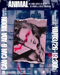 La programación continuará a las 19:30 horas con el concierto Animal: un viaje entre el amor, el miedo y otros destinos, organizado por la Cátedra Annetta Nicoli. La propuesta musical estará a cargo de Ada Moon, compositora, productora y cantante murciana, artista multidisciplinar y egresada de la Facultad de Bellas Artes de Altea. En su trabajo creativo, Ada Moon concibe la música y la imagen como un mismo universo expresivo, en el que lo sonoro y lo audiovisual se entrelazan en una narrativa común que explora emociones, imaginarios y paisajes interiores. El concierto será gratuito y de entrada libre hasta completar aforo.